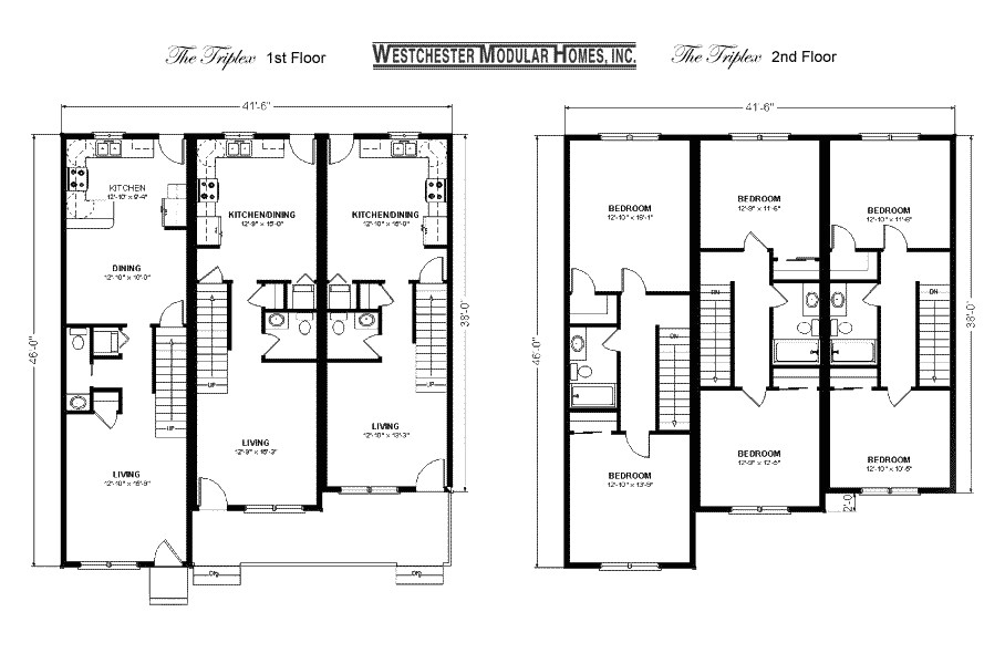 triplex house plans 1 387 s f ea unit 3 beds 2 ba from triplex home plans