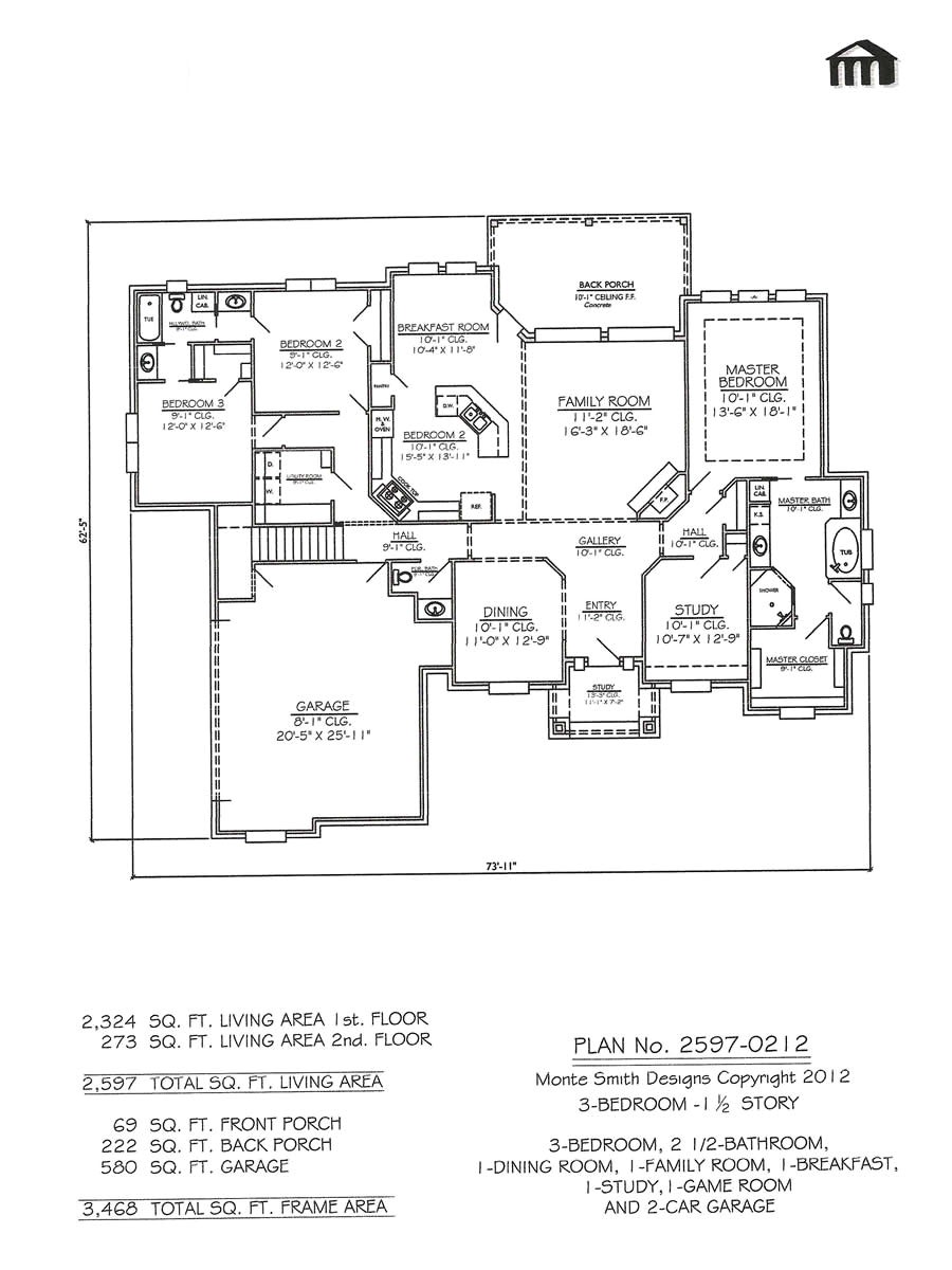 1 1 2 Story Home Plans Plan No 2597 0212