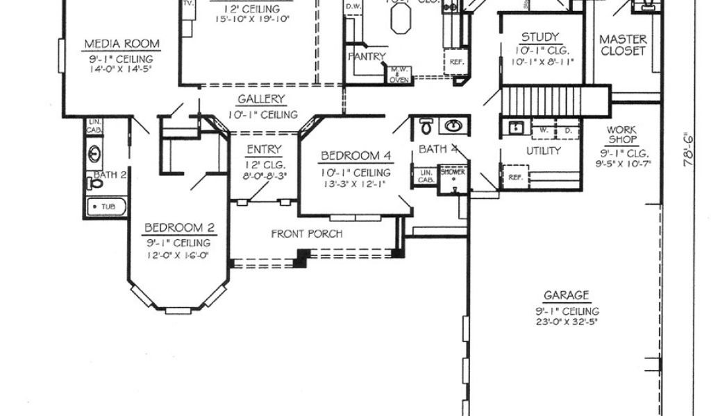 Back To 1 Story House Plans with Media Room