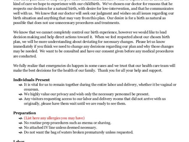 have new images for Home Birth Birth Plan 9 Sample Birth Plans Sample Templates? please contact us immediately.