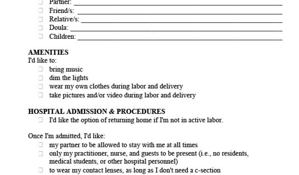 Back To Home Birth Plan Worksheet