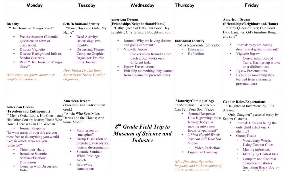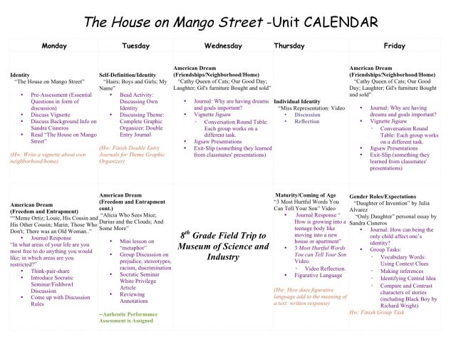 Back To House On Mango Street Unit Plan