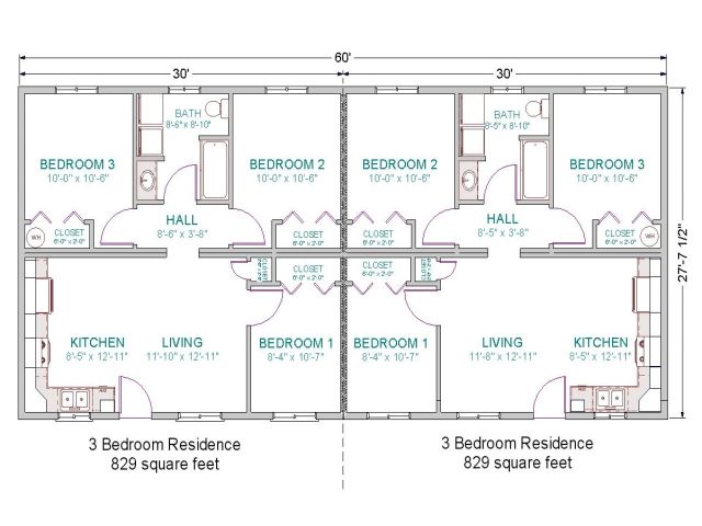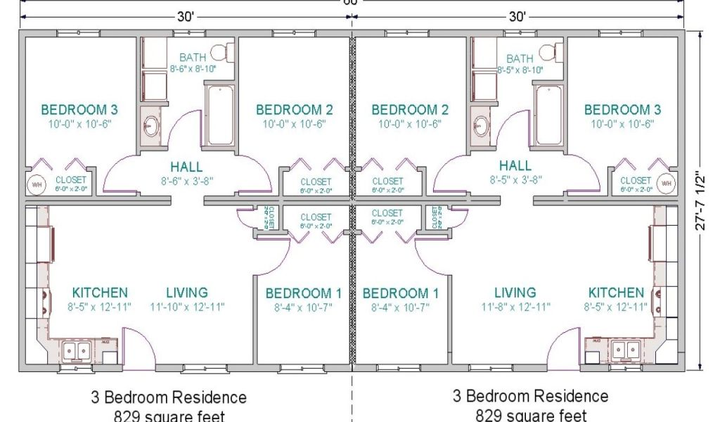 Back To House Plans for Duplexes Three Bedroom