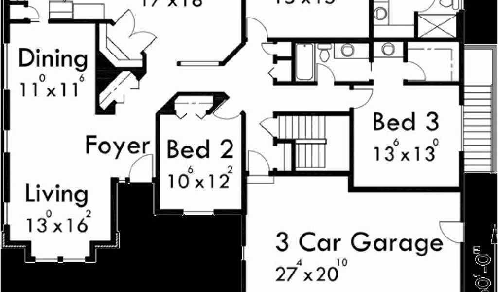 Back To One Level House Plans with 3 Car Garage