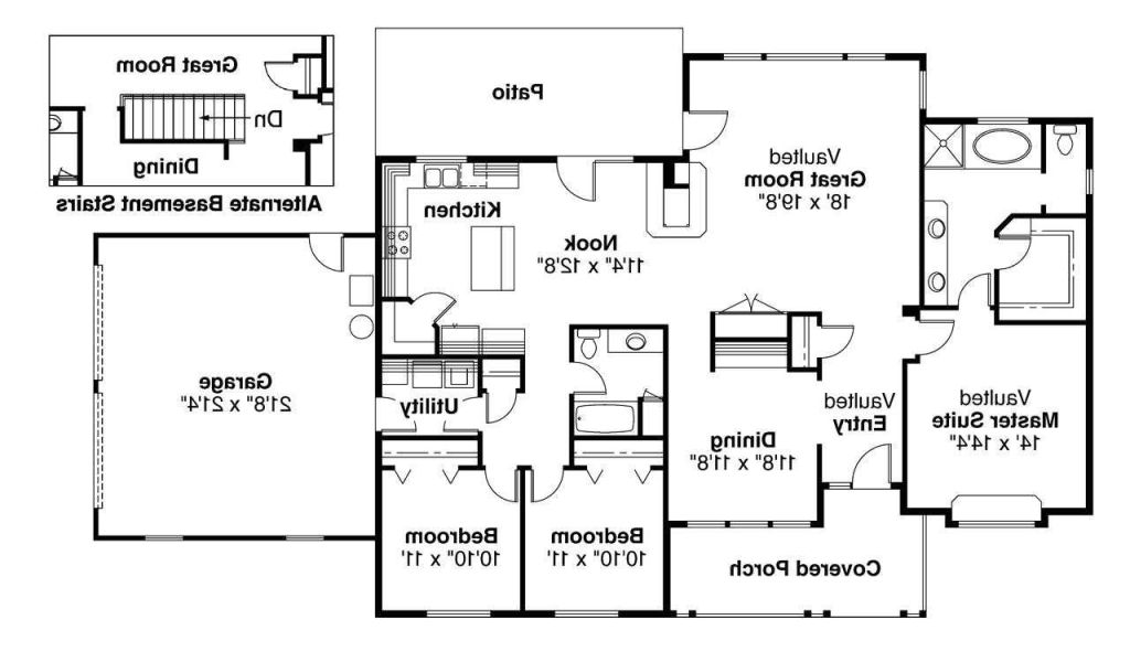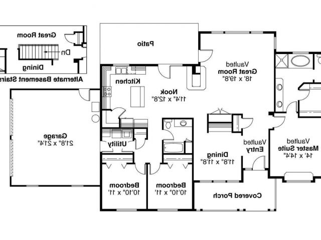 Back To One Story House Plans with Large Kitchens